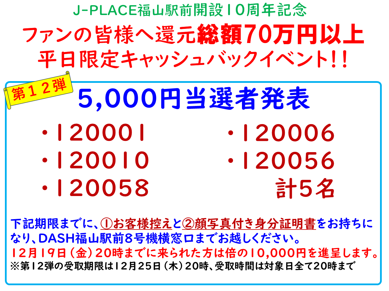J-PLACE福山駅前開設10周年記念 キャッシュバックイベント!!第12弾のお知らせ