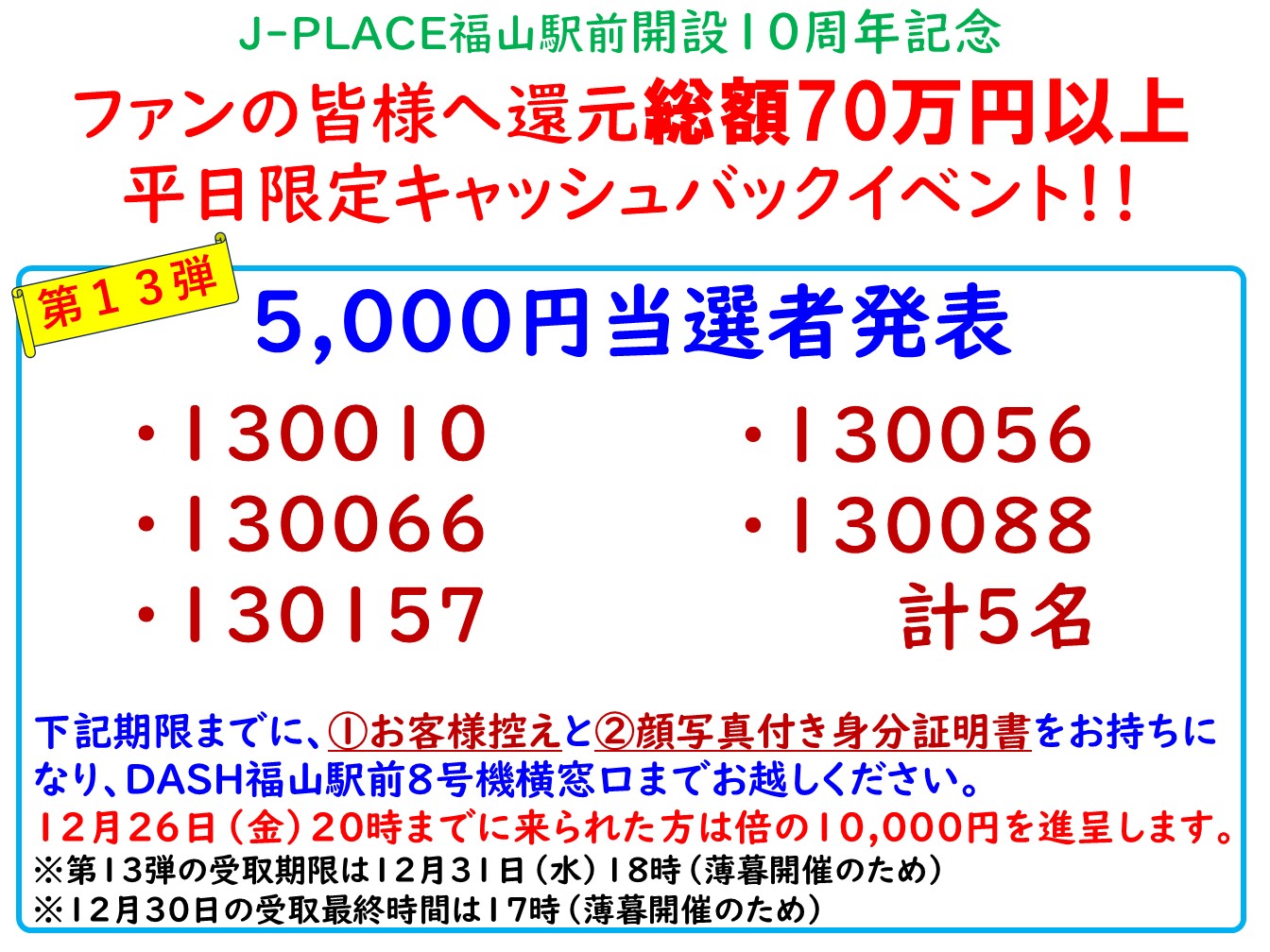 J-PLACE福山駅前開設10周年記念 キャッシュバックイベント!!第14弾のお知らせ →
