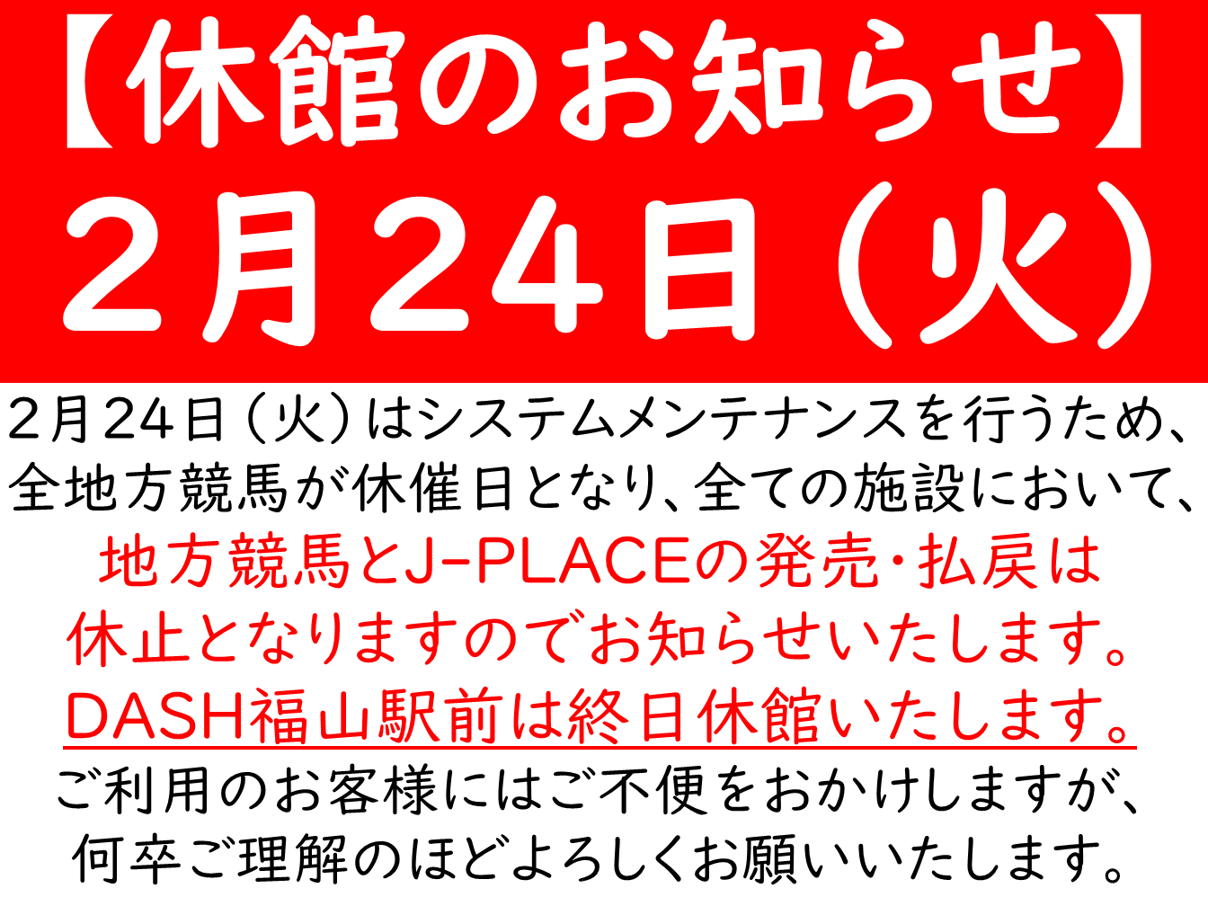 2月24日(火)休館のお知らせ